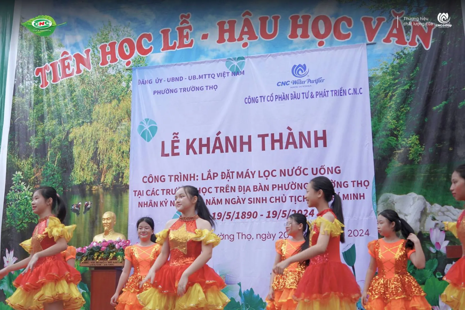 TP.HCM, ngày 20.05.2024 – Phường Trường Thọ, Quận Thủ Đức đã chính thức tổ chức Lễ Khánh Thành công trình lắp đặt máy lọc nước uống tại các trường học trên địa bàn, nhân kỷ niệm 134 năm ngày sinh Chủ tịch Hồ Chí Minh (19/5/1890 – 19/5/2024). Công trình được thực hiện với sự đồng hành của Công ty Cổ phần Đầu tư & Phát triển CNC.