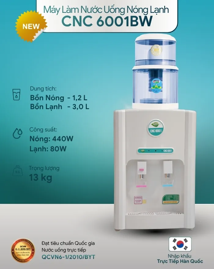 Được sản xuất và nhập khẩu chính hãng Hàn Quốc, đảm bảo sự tin cậy cho khách hàng. Tính năng 2 trong 1 không chỉ cung cấp nguồn nước sạc tinh khiết mà còn rất tiện lợi và tiết kiệm thời gian với khả năng làm nóng, lạnh nước trực tiếp, nhanh chóng.