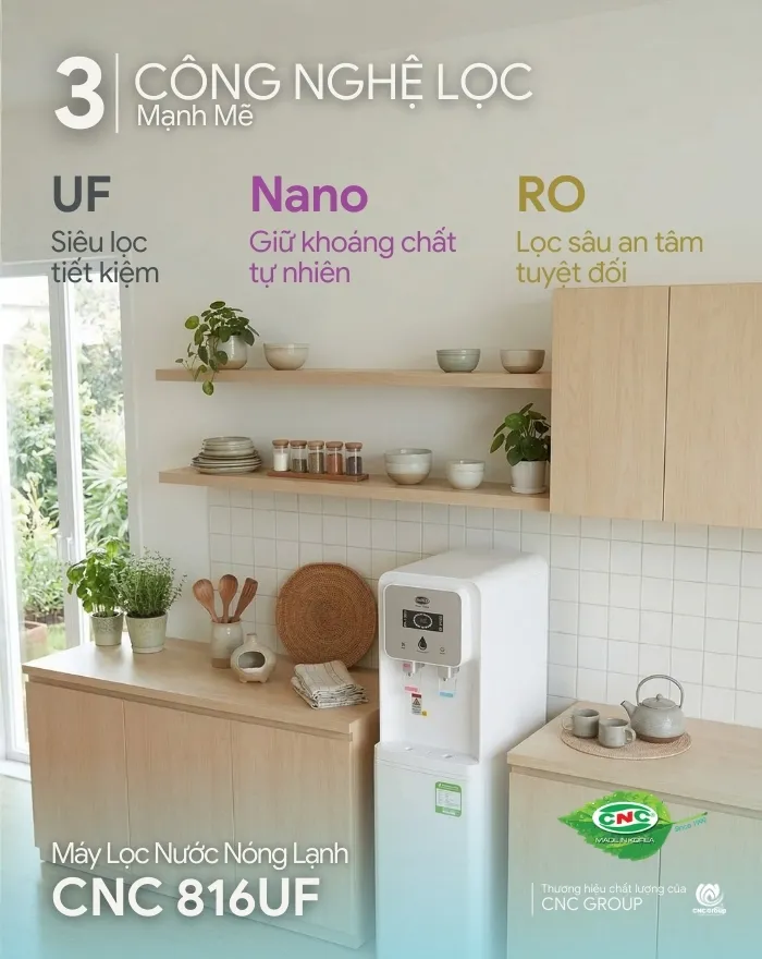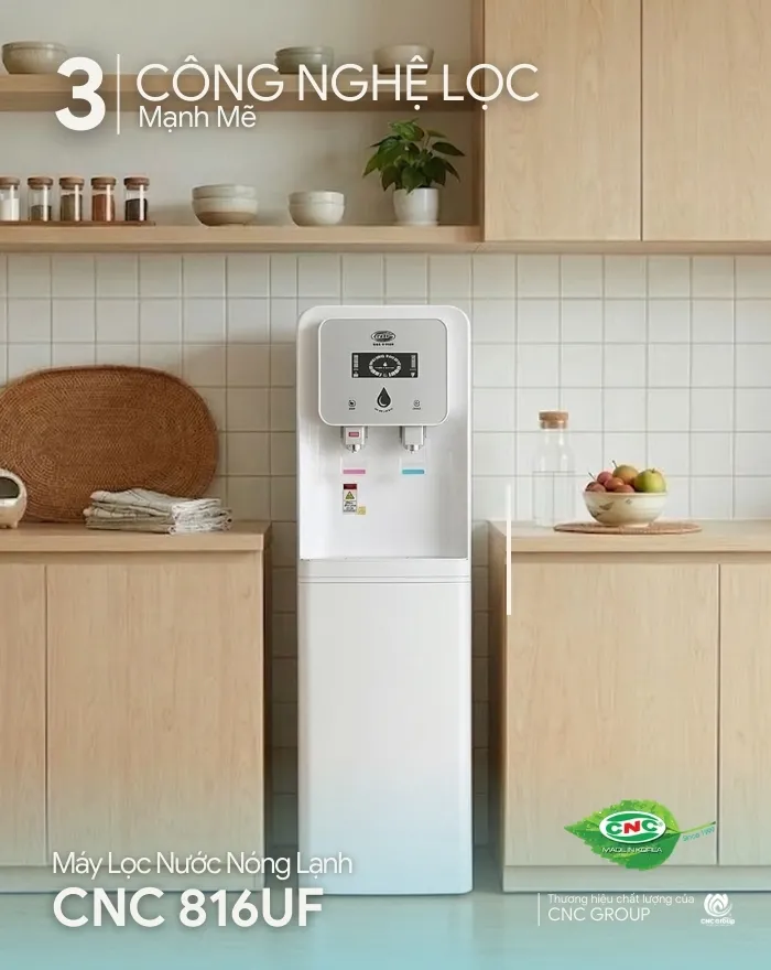 Máy lọc nước nóng lạnh CNC816UF được sản xuất và nhập khẩu chính hãng Hàn Quốc, đảm bảo sự tin cậy cho khách hàng. Tính năng 2 trong 1 không chỉ cung cấp nguồn nước sạch tinh khiết mà còn rất tiện lợi và tiết kiệm thời gian với khả năng làm nóng, lạnh nước trực tiếp, nhanh chóng. Sản phẩm phù hợp với mọi đối tượng sử dụng tại việt Nam như: Bệnh viện, công sở, trường học, văn phòng, gia đình…