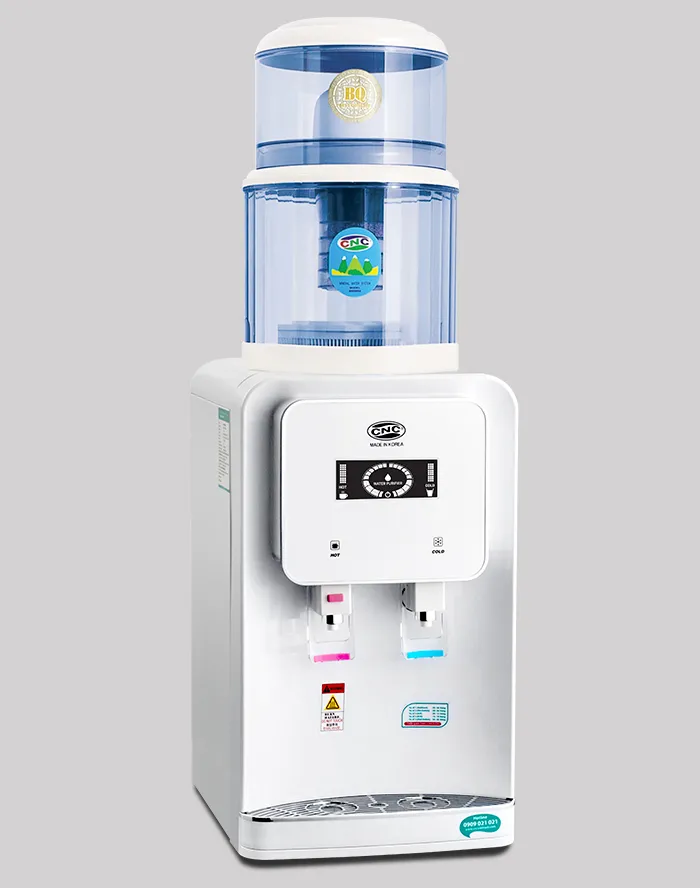 Máy úp bình nóng lạnh CNC815HC được sản xuất và nhập khẩu nguyên chiếc chính hãng Hàn Quốc, đảm bảo sự tin cậy cho khách hàng. Máy sử dụng bình nước 20L, bình top lọc nước CNC TOP hoặc bình top lọc nước KENT CRYSTAL rất tiện lợi và tiết kiệm thời gian với khả năng làm nóng, lạnh nước trực tiếp, nhanh chóng. Sản phẩm phù hợp với mọi đối tượng sử dụng tại việt Nam như: công sở, trường học, văn phòng, gia đình…